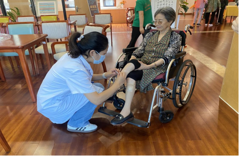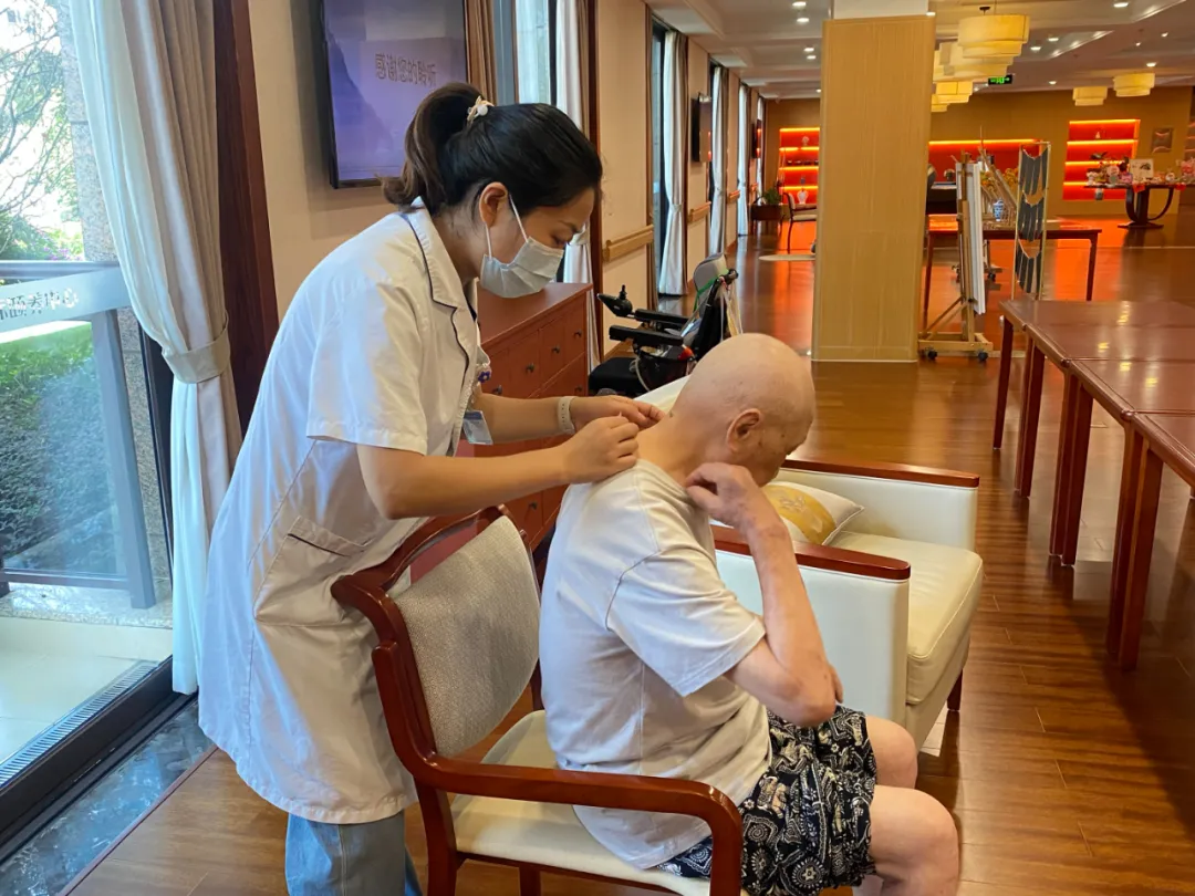 康复科杨思敏医生为乐龄居长辈进行三伏贴体验