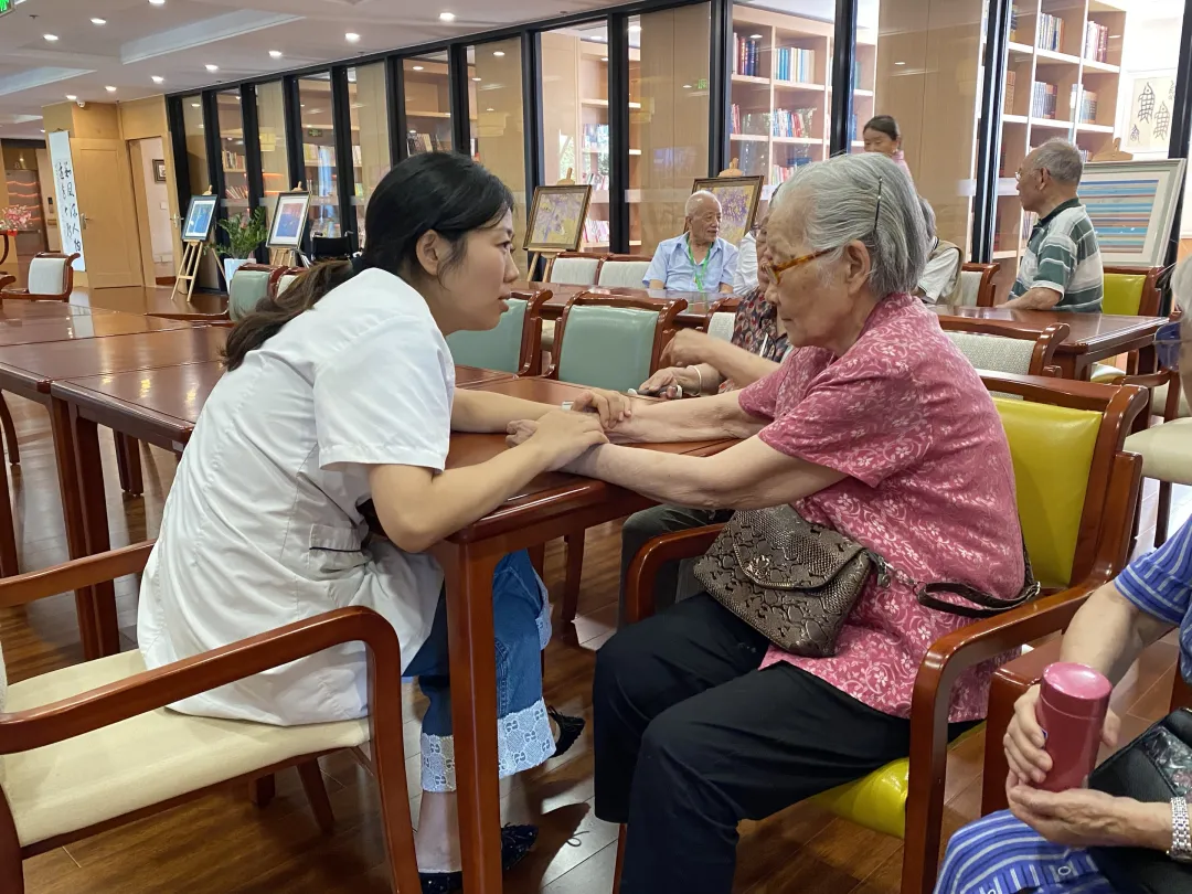 为了让老人们更准确地了解自己的体质,讲座结束后,冯纪涛主任和杨思敏医生还为老人们进行了体质辨识。通过望、闻、问、切等传统中医诊断方法,为每一位老人进行了详细的体质评估。在筛查过程中,医生们认真细致,不放过任何一个细节,针对每位老人的体质特点,给出了个性化的养生建议,包括饮食调理、运动锻炼、情志调养等方面。