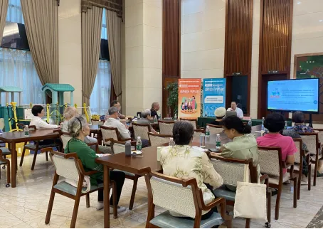 在乐龄居颐养公寓,针对集体居住老年人的特点,讲座重点讲解了如何通过日常观察、简易认知评估工具早期发现记忆减退、行为改变等潜在迹象。同时,对护理人员进行了专业指导,提升他们在日常照护中识别风险、进行非药物干预的能力。
